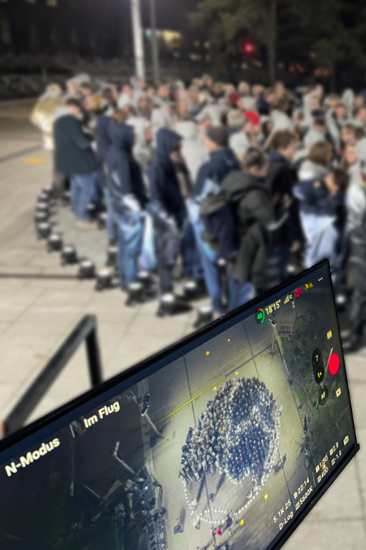 Andererseits muss deutlich werden, dass das Motiv aus einzelnen Menschen gebildet wurde. Für den diesbezüglichen Nachweis kam eine Drohne zum Einsatz, die das Geschehen aus der Vogelperspektive aufzeichnete. Schon nach wenigen Minuten war es dann amtlich: Aufgabe erfüllt – Weltrekord geschafft.