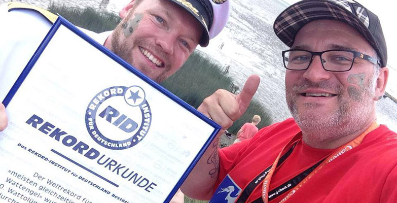 Und tatsächlich waren es in Brunsbüttel 350 Wattengel, die sich an diesem denkwürdigen Wattkampf-Tag ins Watt gruben. Nach einer kurzen Urkundenübergabe zur Bestätigung des neuen Rekords durch Rekordrichter Olaf Kuchenbecker, ging es weiter zu den eigentlichen Wattkämpfen, die beendet sein mussten, bevor die Flut wieder einsetzt.