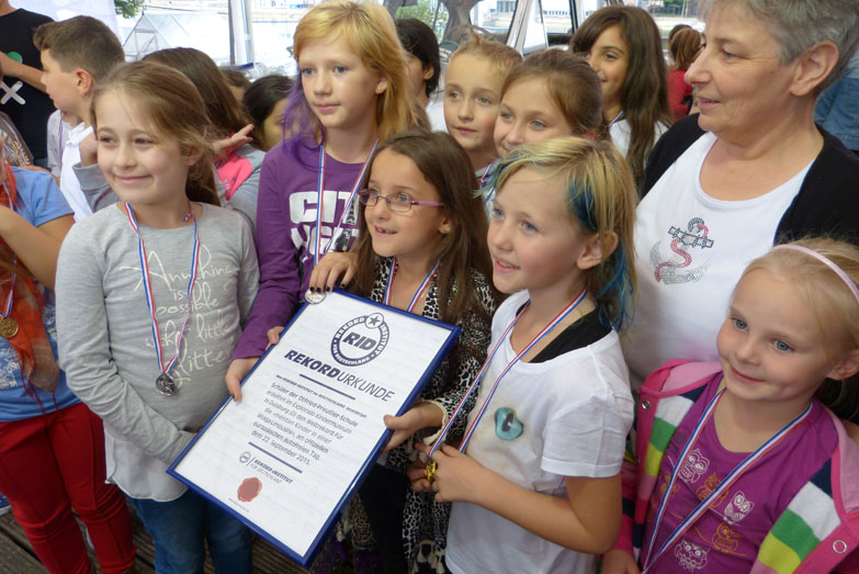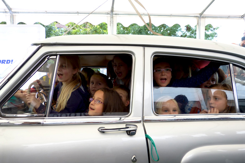 Offensichtlich zahlte es sich aus, dass die Schülerinnen und Schüler der Otfried-Preußler-Grundschule vorab üben durften, wie und wo sie sich am besten ins Auto quetschen. Und so schafften es sogar noch vor Ablauf der Zeit 32 Kinder, sich regelgerecht ins Fahrzeug zu drängeln. Unter großem Jubel war Rekordrichter Olaf Kuchenbecker der erste Gratulant, als er Teilnehmern und Museumsleiter Tannhäuser die Weltrekordurkunden überreichte.