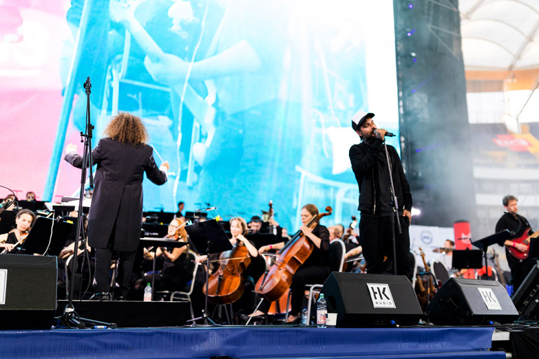 Nach dem aktiven Rekordkonzert folgte für Orchestermusiker und Publikum das nächste Highlight des Abends: In einem Popkonzert gaben sich unter anhaltendem Beifall Daniel Wirtz, Angelo Kelly (der bereits als Teil des Rekordorchesters getrommelt hatte), Franco Leon und Headliner Johannes Oerding das Mikrofon in die Hand.
