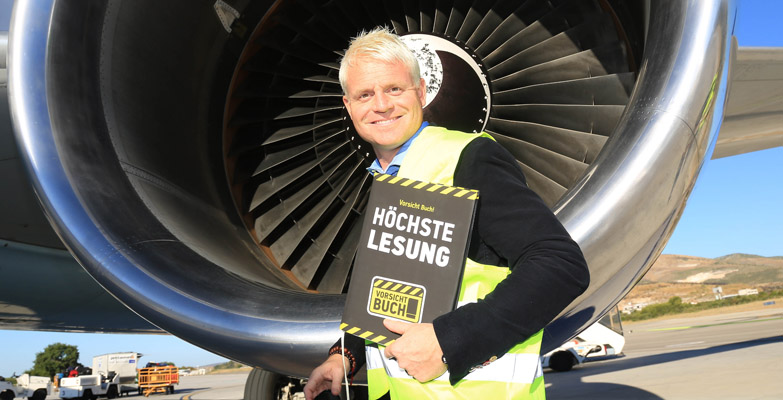 Mit dieser Lesung in 37.000 Fuß Höhe bot er nicht nur beste Unterhaltung, sondern stellte gemeinsam mit der Kampagne »Vorsicht Buch!«, und Condor einen neuen Weltrekord auf, und erzielte die »höchste Autorenlesung der Welt«. Offiziell zertifiziert durch das Rekord-Institut für Deutschland wurde der Weltrekord am 22. Mai 2016 auf dem Set der TV-Show »Immer wieder sonntags« (ARD, D).