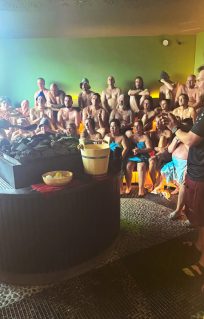 Im gesamten Bad waren Feldbetten und 150 Liegen aufgestellt worden, damit die Gäste dort ruhen und schlafen konnten. Und dieses Angebot wurde tatsächlich gut genutzt – immer wieder sah man Gäste, die sich stundenweise auf die Liegen gebettet hatten und in Decken eingewickelt schliefen.
