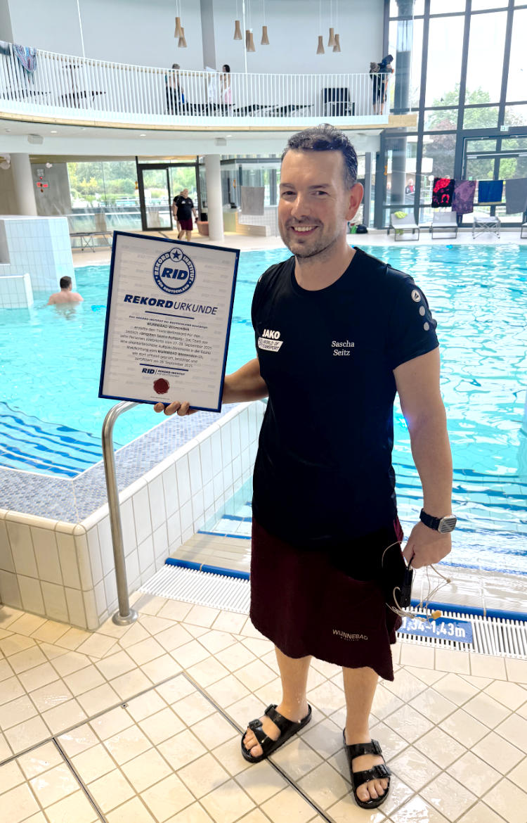 Mit dieser Zeit verbesserte das Wunnebad den offiziellen RID-Weltrekord für den »längsten Sauna-Aufguss«, der zuvor im ostfriesischen Neuharlingersiel gelegen hatte. Von Samstagmorgen bis Sonntagvormittag war die Waldlichtung-Sauna im »Wunnebad Winnenden« Schauplatz dieses heißen Weltrekordversuches. Vor Ort geprüft und zertifiziert wurde dieser von RID-Rekordrichterin Laura Koblischek, die dazu eigens aus Hamburg angereist war.