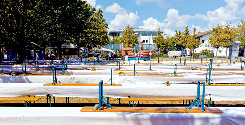 Das Rekordvorhaben wurde von einem bunten Rahmenprogramm flankiert, für das die Veranstalter Konzerte und »Kindervergnügungsstationen« organisiert hatten. Schon ab morgens waren Helferinnen und Helfer vor Ort, um alles vorzubereiten. Insgesamt 666 Bierbankgarnituren wollten aufgebaut und regelgerecht baulich fest miteinander verbunden werden. Zusätzlich zum Servieren von Kaffee und Kuchen ist diese Verbindung Bedingung für einen erfolgreichen Weltrekord.