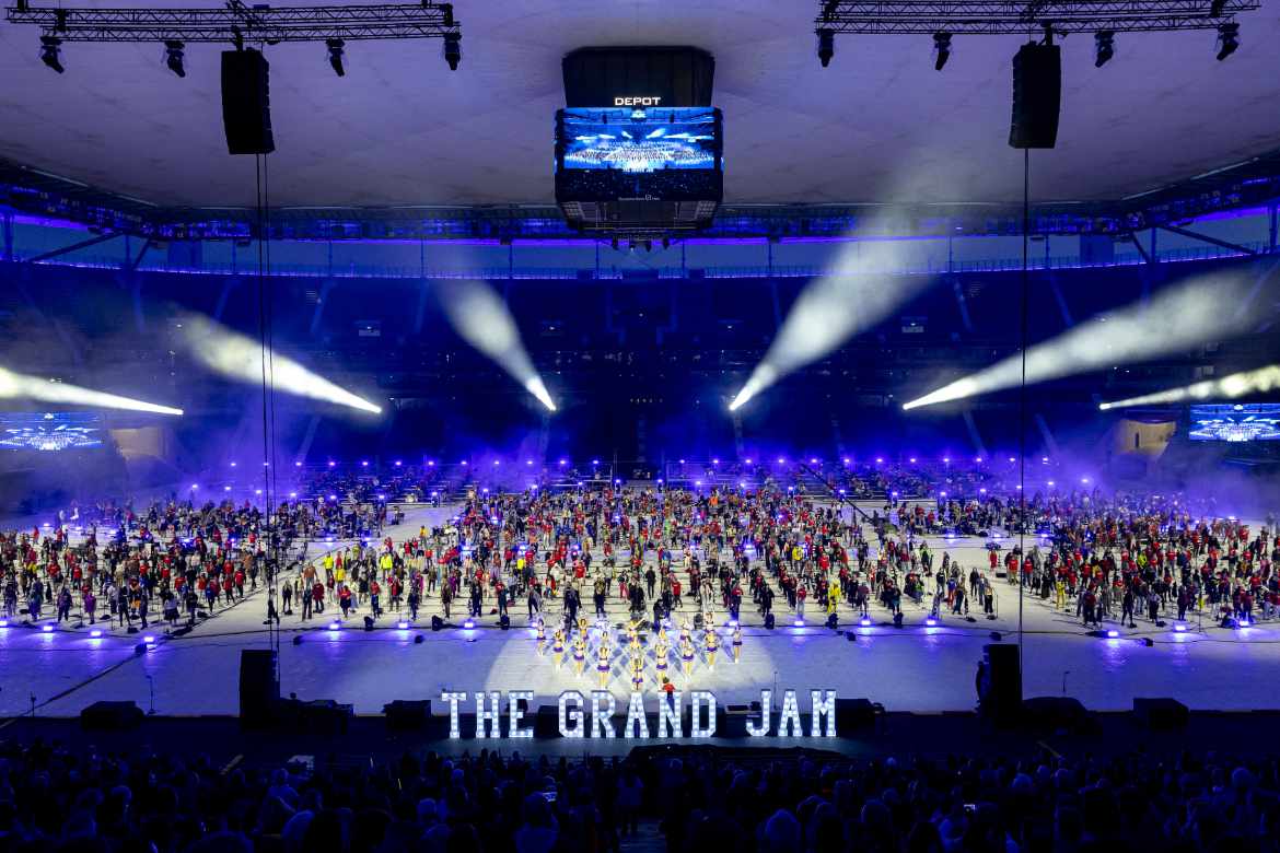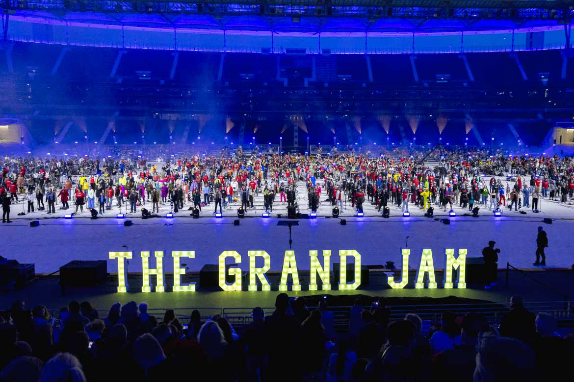 Publikum und Musizierende erlebten bei THE GRAND JAM eine mitreißende Live-Performance. Musikerinnen und Musiker aus ganz Deutschland und darüber hinaus setzten hier gemeinsam ein Zeichen für Gemeinschaft und Teamgeist. Ein Tag voll Emotionen, Musik und neuem RID-Weltrekord – oder »Beautiful Day«, wie U2 sagen würden.Foto: THE GRAND JAM (4); THE GRAND JAM/ Katarina Ivanisevic (2), ffm-will/Jürgen Will (1)