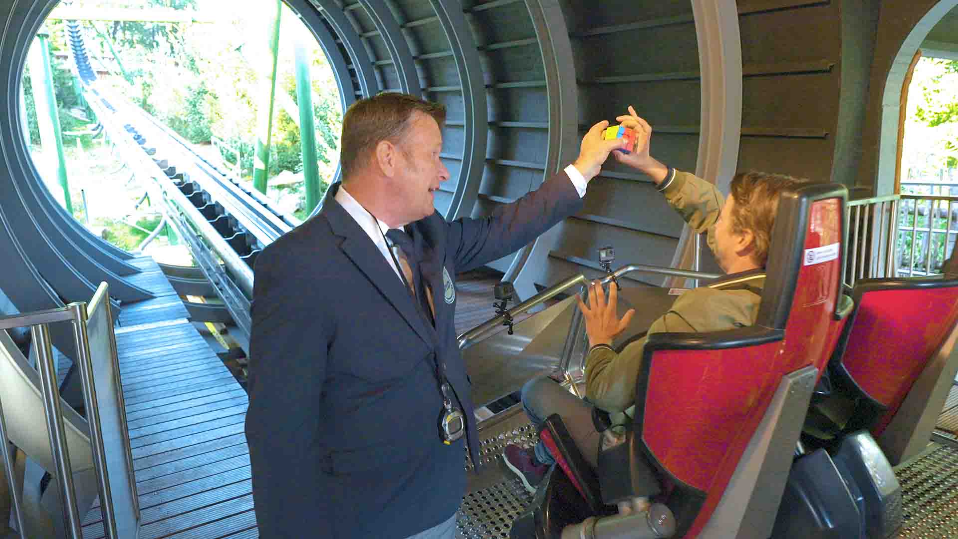 Florian Kastenmeier ist Zauberwürfel-Fan durch und durch. Mit dieser Leidenschaft erzielte er den RID-Weltrekord für die weltweit »größte Zauberwürfelsammlung«. Nun wollte sich Kastenmeier mit einem deutlich actionreicheren Weltrekord präsentieren und wählte den Bayern-Park im Landkreis Dingolfing-Landau (D). Dort wollte der Zauberwürfel-Fan das »schnellste Lösen eines Zauberwürfels in der Achterbahn« versuchen.